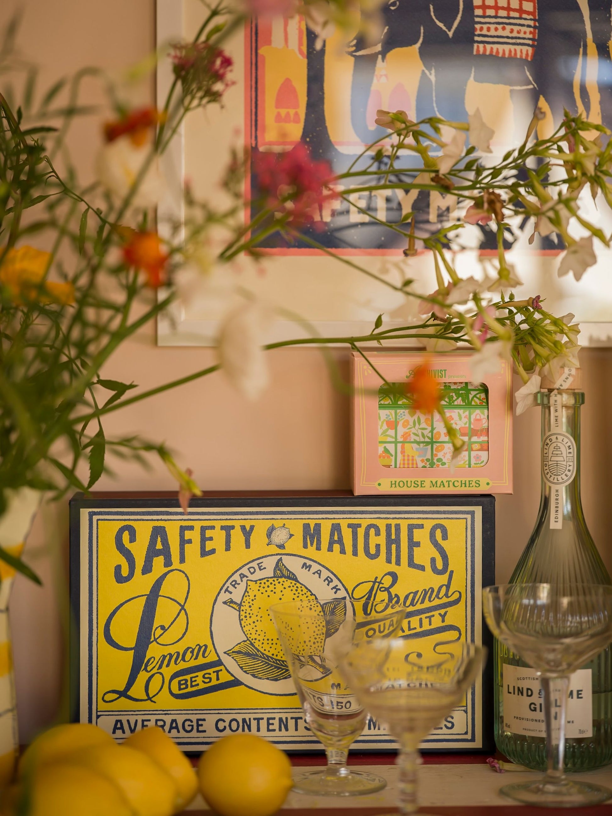 Grande boîte d’allumettes XXL illustrée d’un citron façon étiquette vintage, aux couleurs éclatantes et au charme graphique.