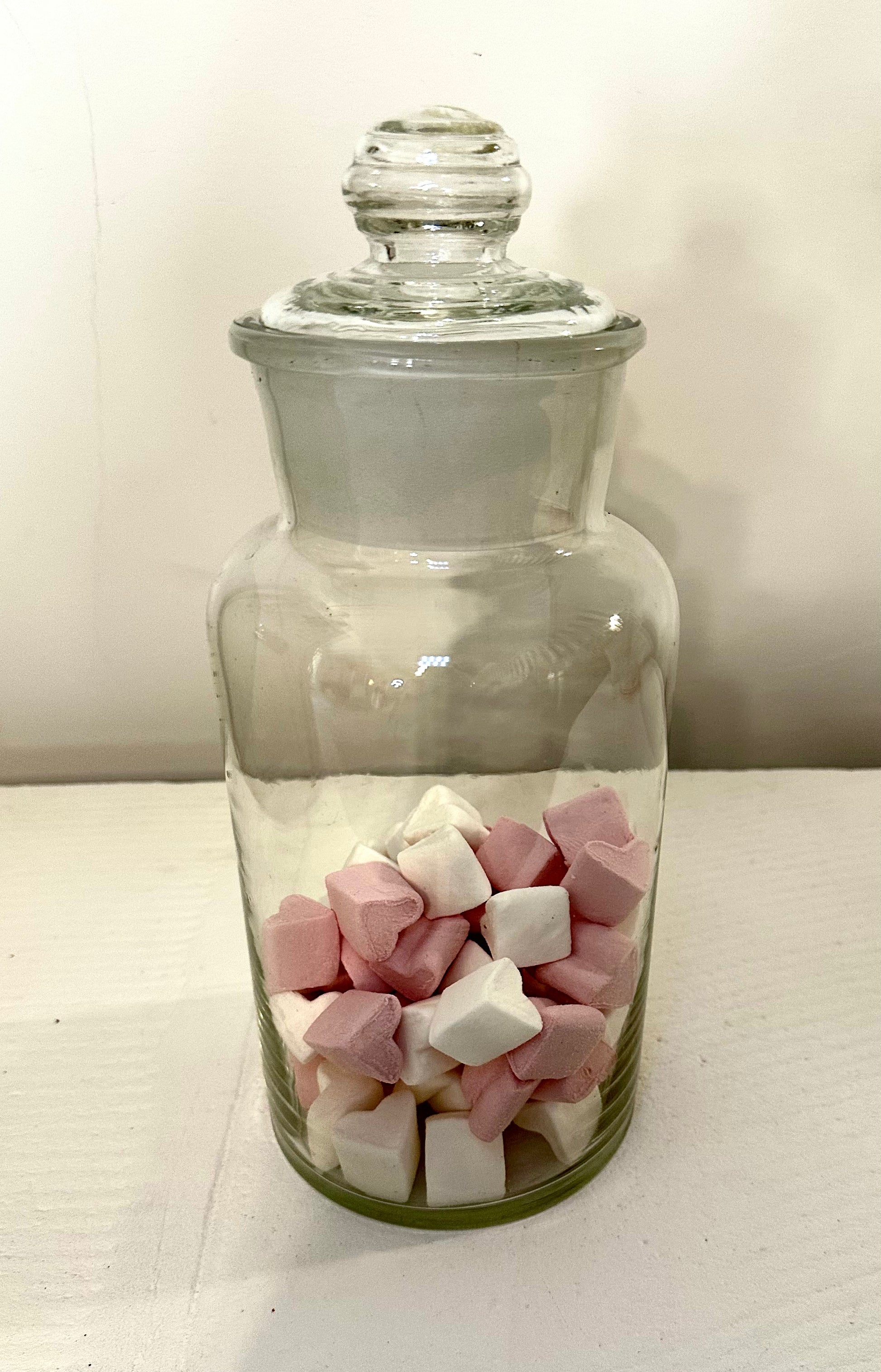 Véritable bonbonne à bonbons de boulangerie, en verre épais et dotée de son couvercle d’origine. Une pièce vintage comme on les aime : simple, généreuse, parfaite pour exposer des douceurs, conserver des pâtes ou simplement ajouter une touche rétro à la cuisine.