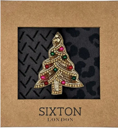 On adore le combo parfait : des chaussettes douces et stylées, et une broche brillante en forme de sapin de Noël à épingler partout.