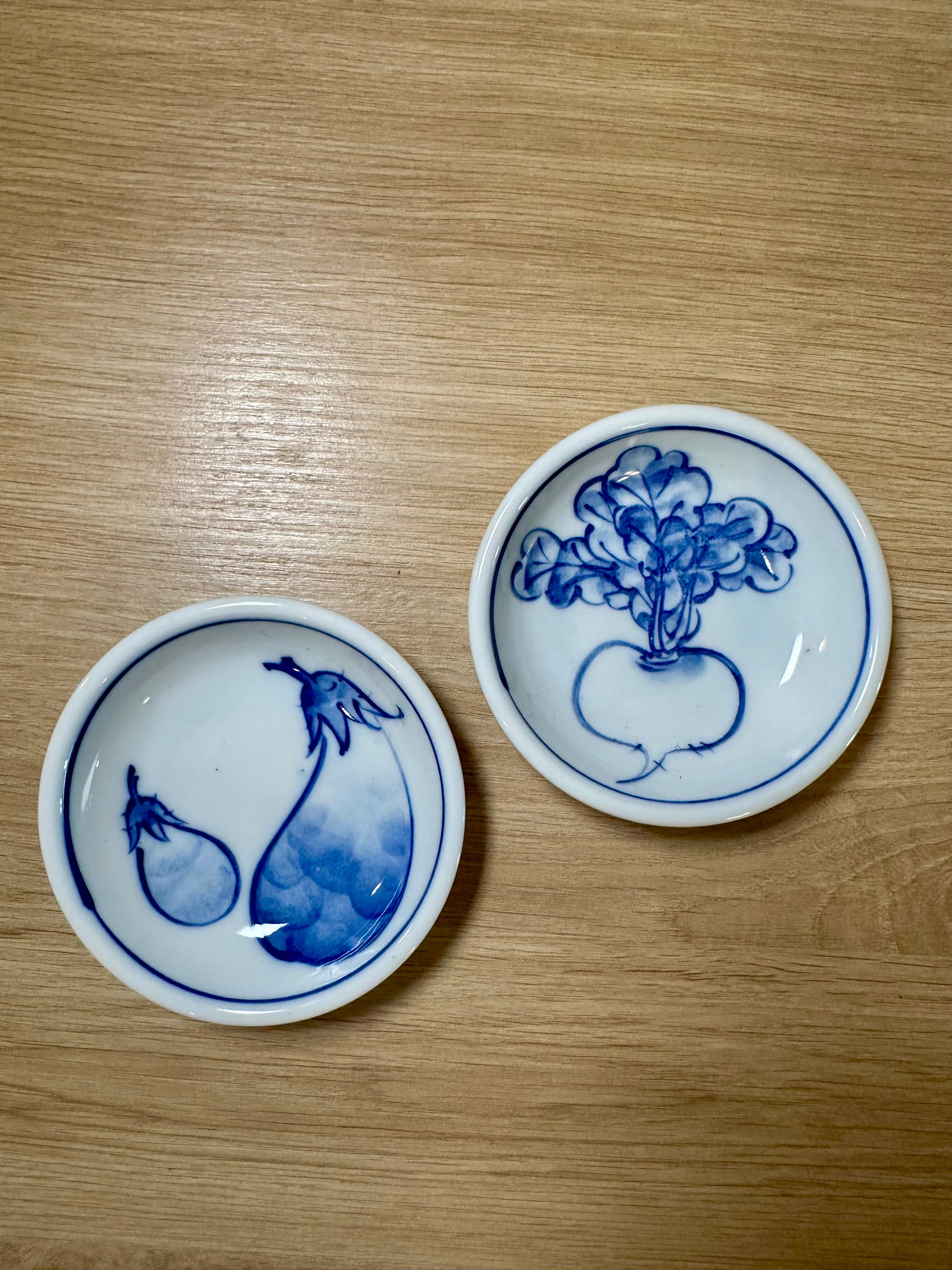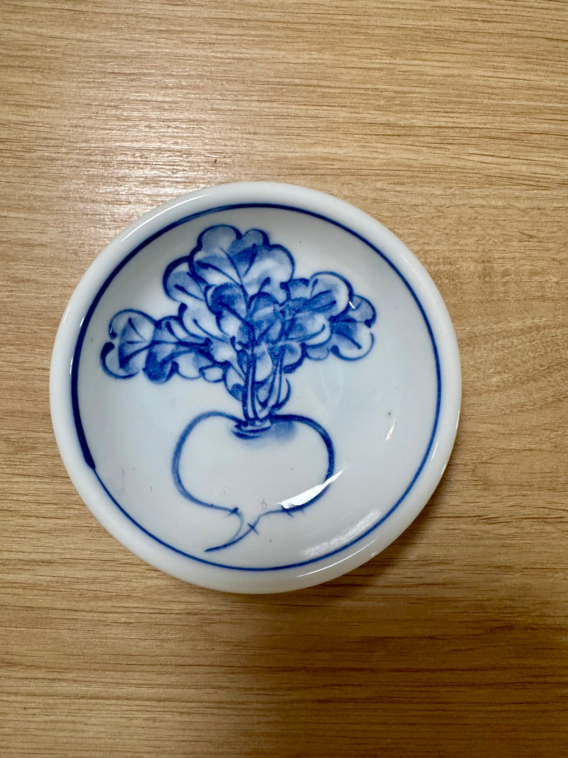 Une petite coupelle en porcelaine japonaise décorée d’un motif de navet (kabu), un légume emblématique de la cuisine japonaise souvent utilisé dans les plats mijotés traditionnels. Un décor simple et délicat qui illustre le lien très fort entre artisanat et culture culinaire au Japon.
