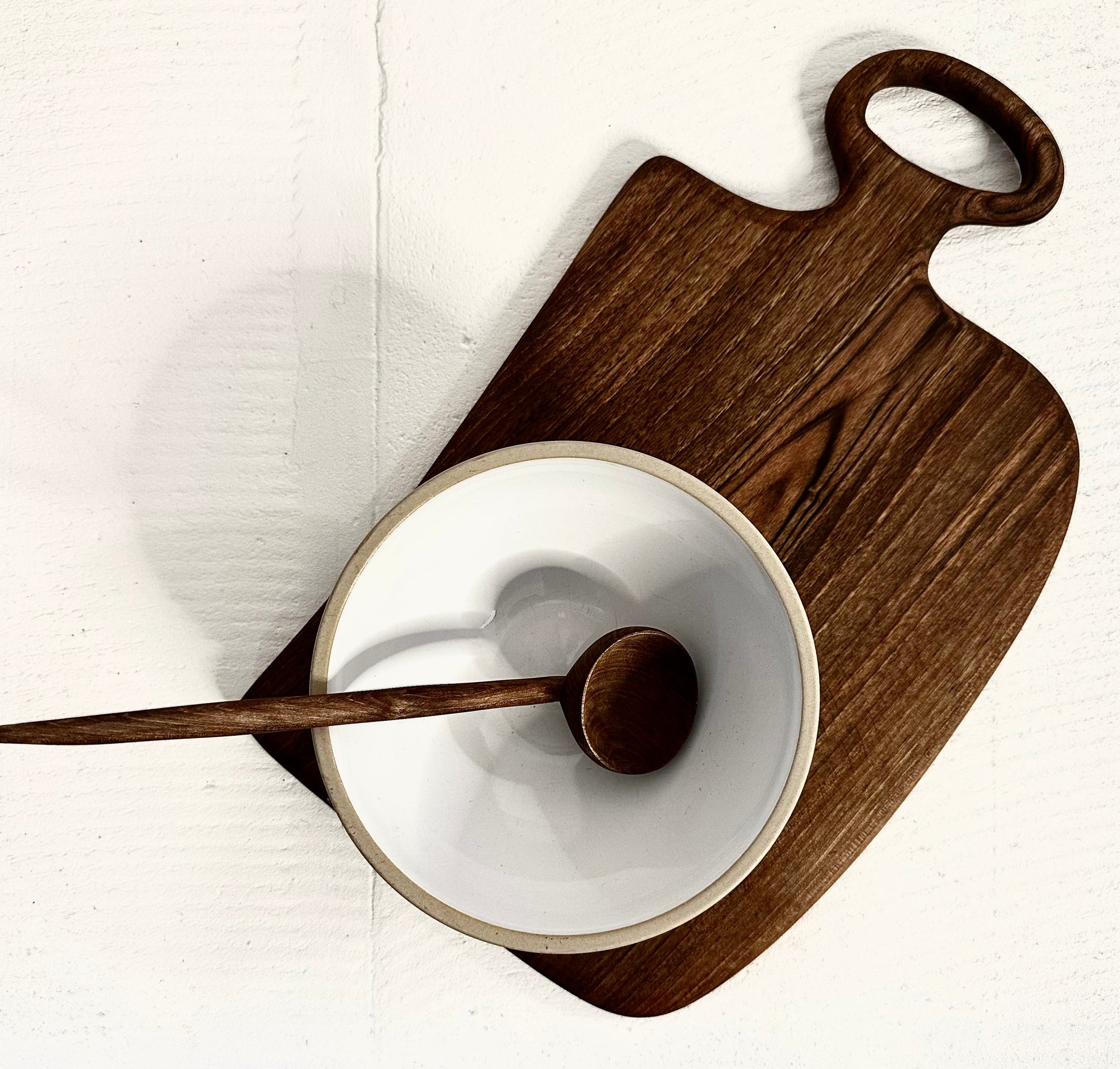 Cuillère beldi en noyer du Maroc, mi-louche, mi-cuillère de service. Parfaite pour servir soupes, ragouts et plats en sauce.