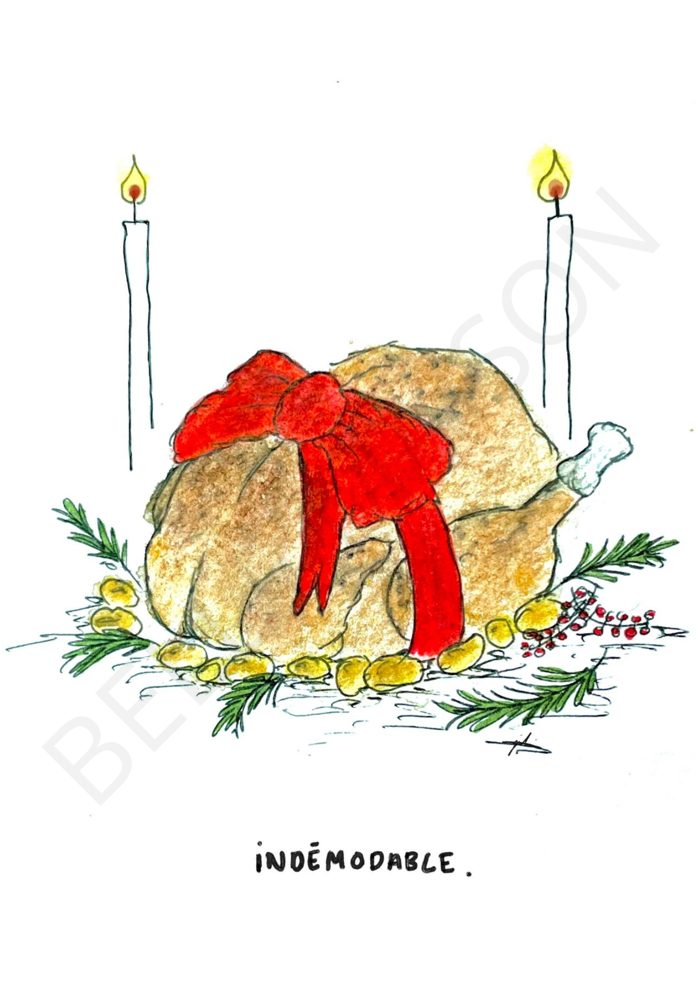 La dinde du 24 décembre, servie avec amour, humour… et un gros nœud rouge.