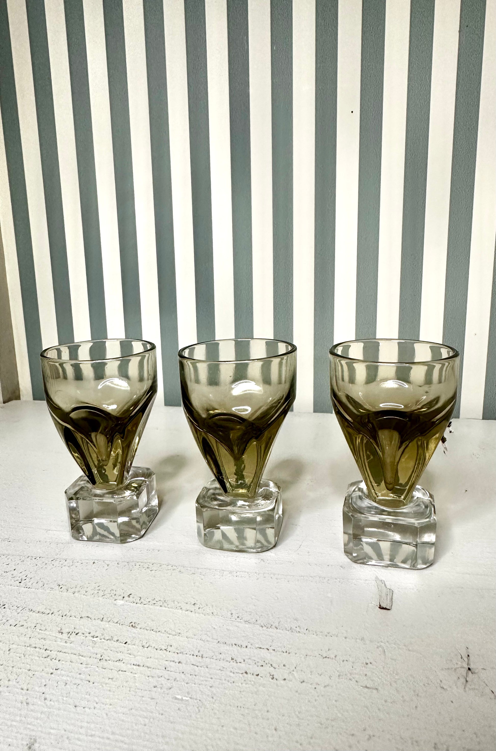 Un trio au charme fou, avec leur pied cubique en verre épais et leur silhouette fumée qui capte la lumière et transforme n’importe quel apéro en petit moment chic. Parfaits pour une liqueur, un digestif… ou juste pour décorer une étagère.