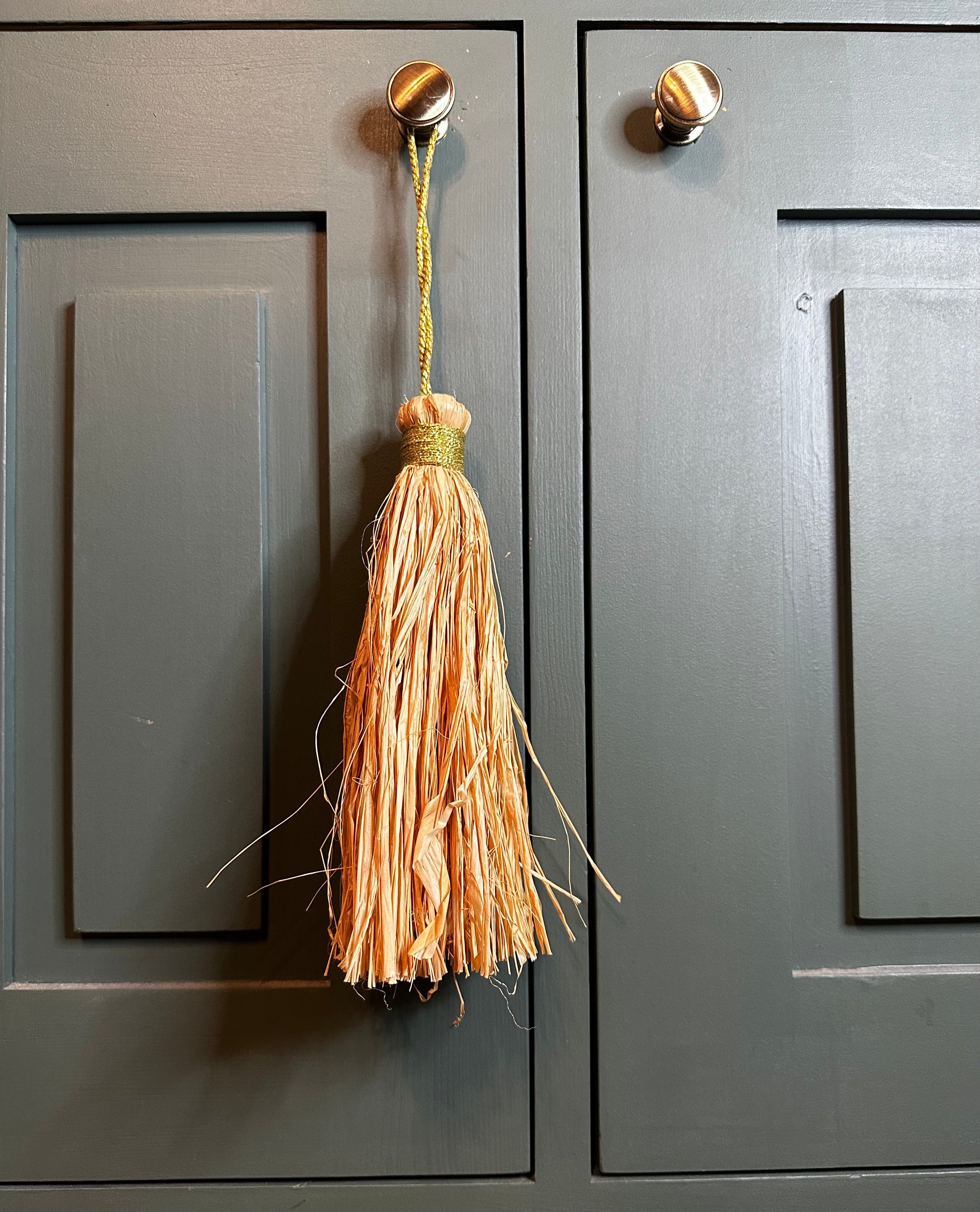 Grand pompon en raphia naturel de 22 cm, fait main, pour une touche artisanale et joyeuse dans la maison.
