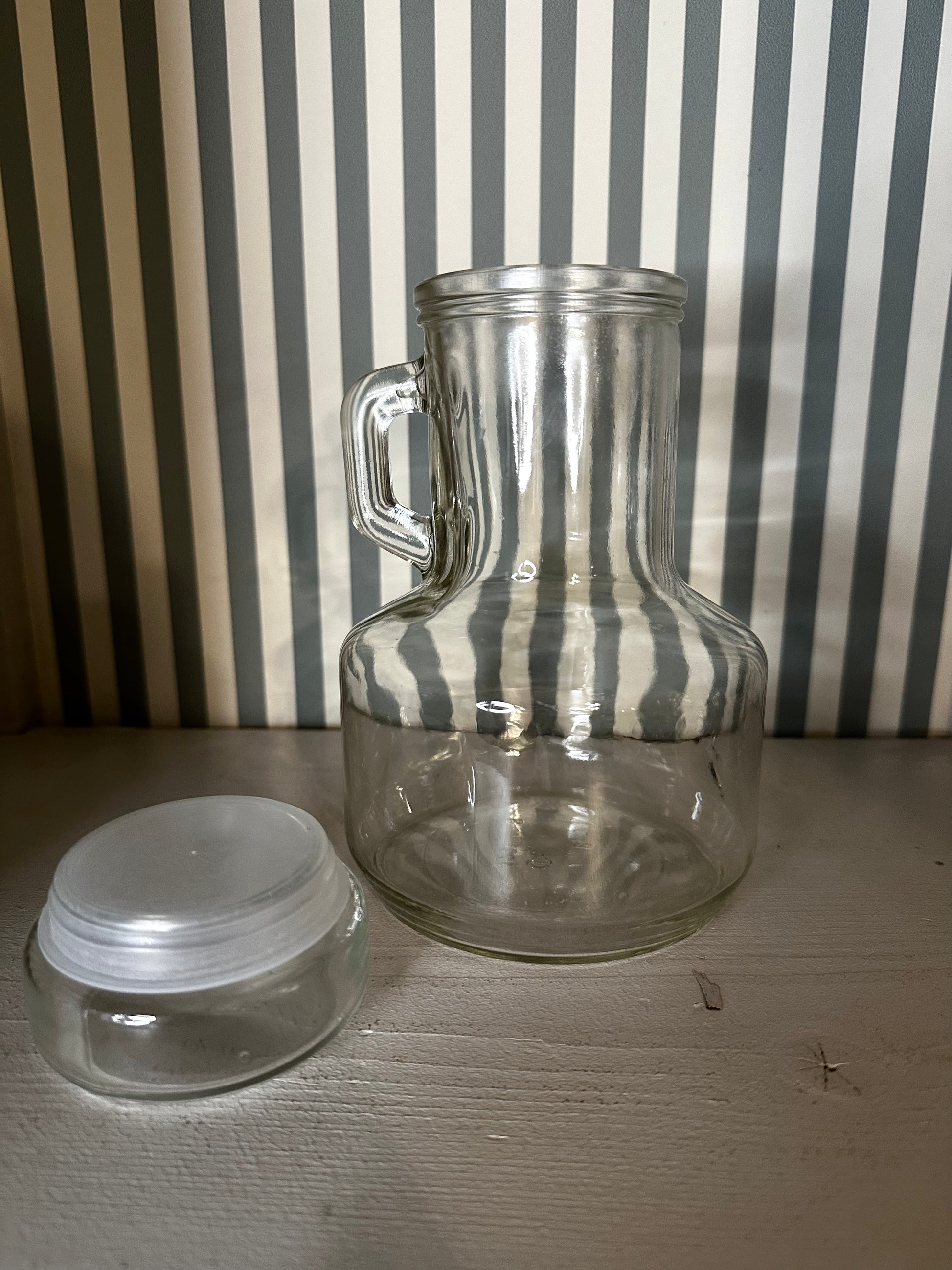 Pot en verre avec poignée & couvercle - produit chiné