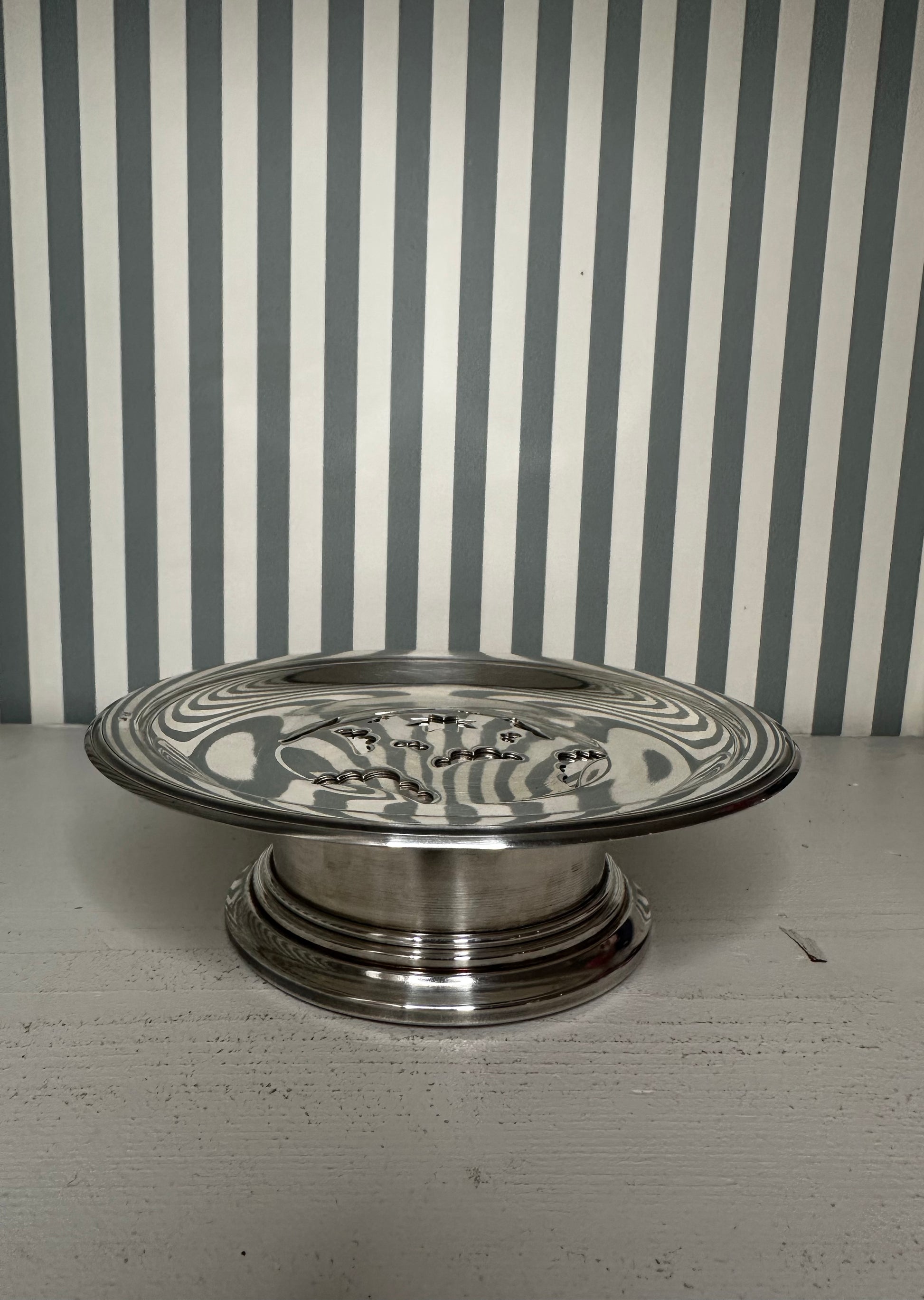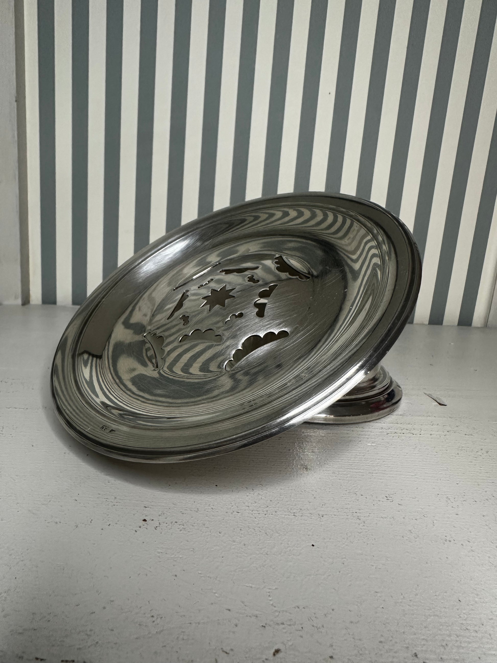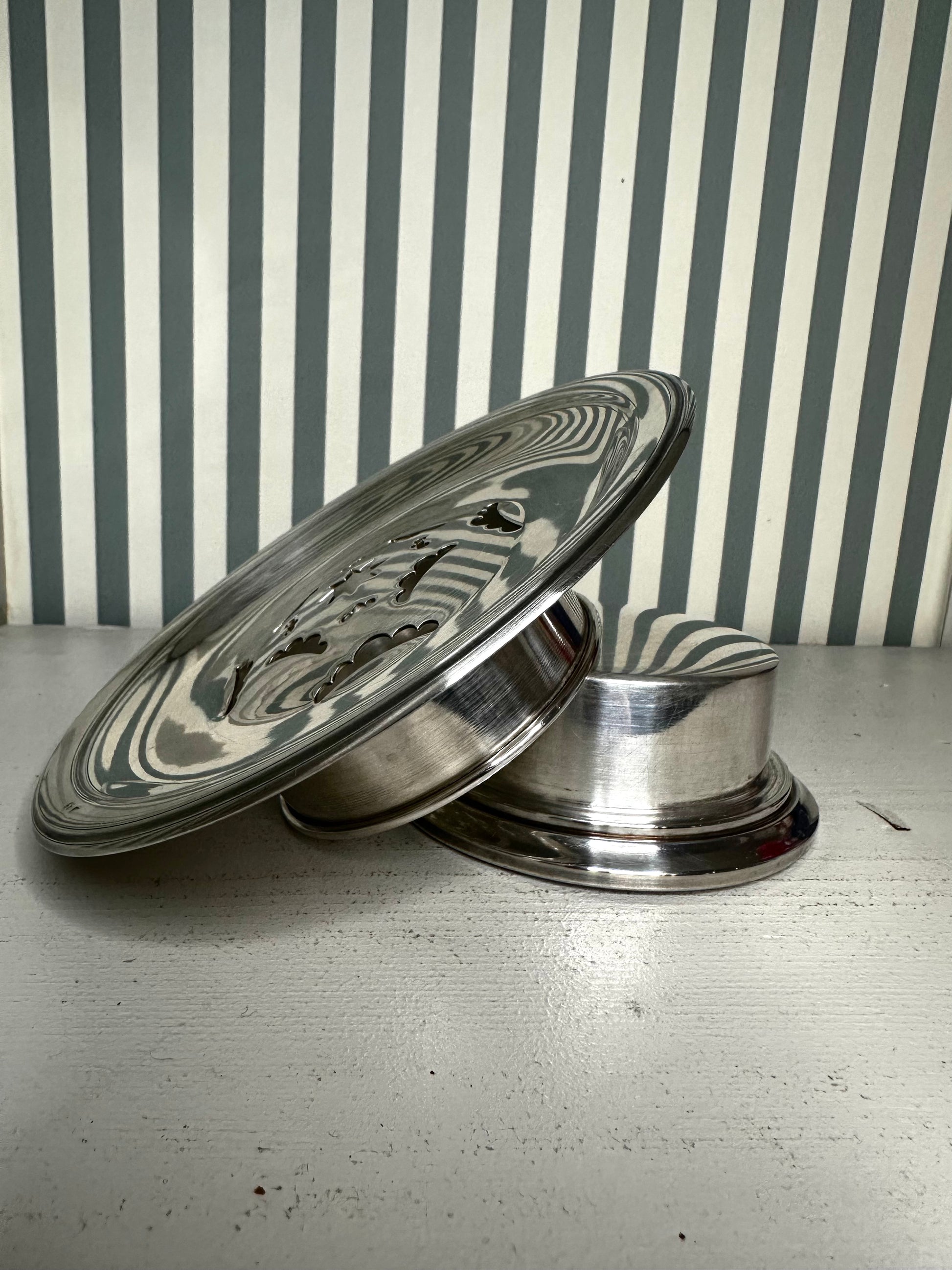 Objet ancien en métal, aussi appelé presse-beurre, utilisé autrefois pour presser et présenter le beurre à table avant de le tartiner. Un bel ustensile d’époque, aujourd’hui apprécié autant pour son histoire que pour son potentiel décoratif en cuisine.