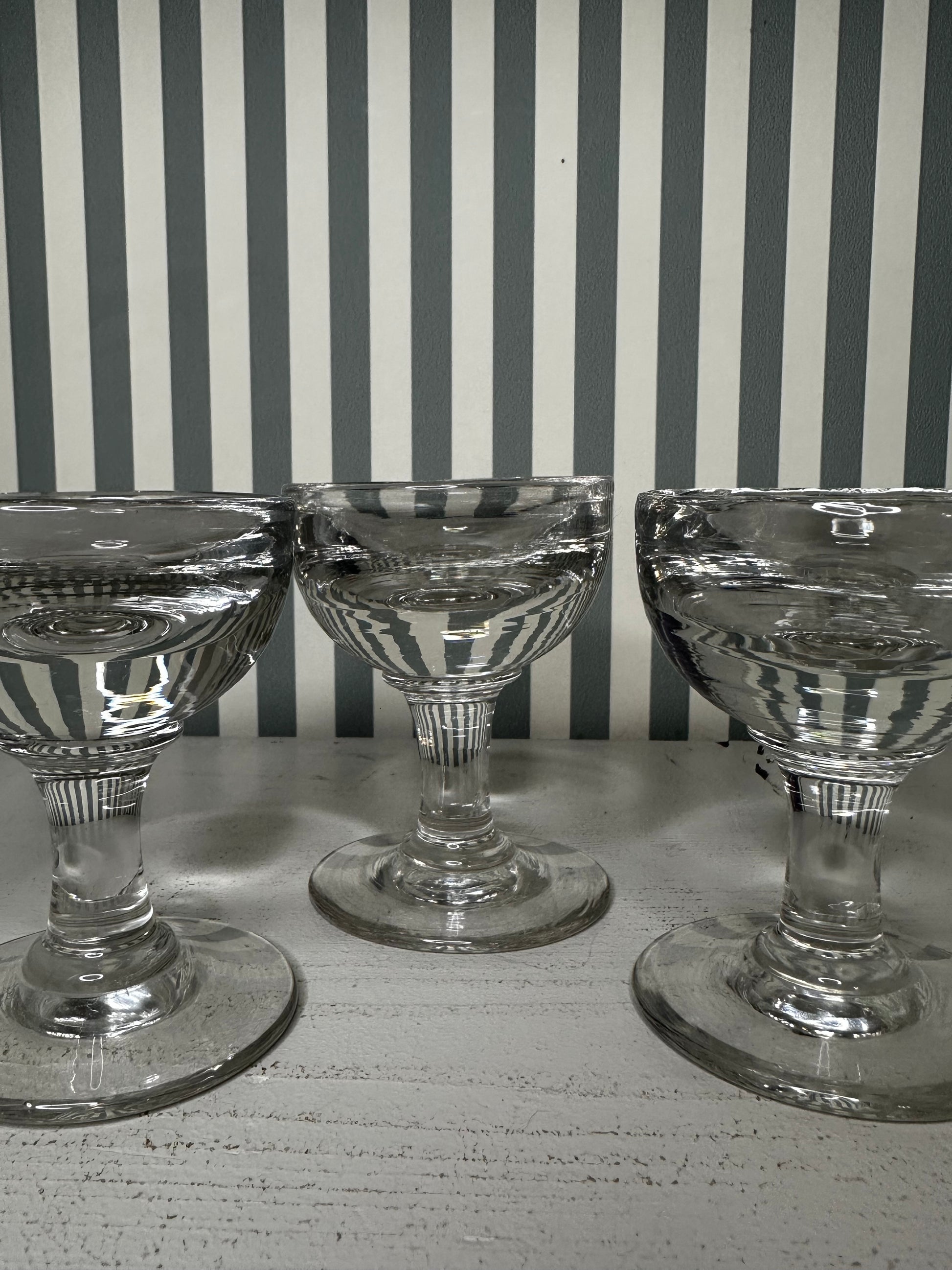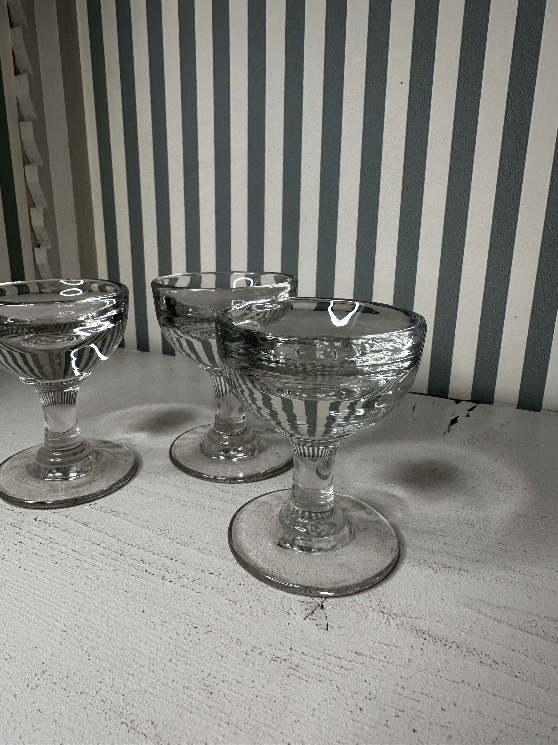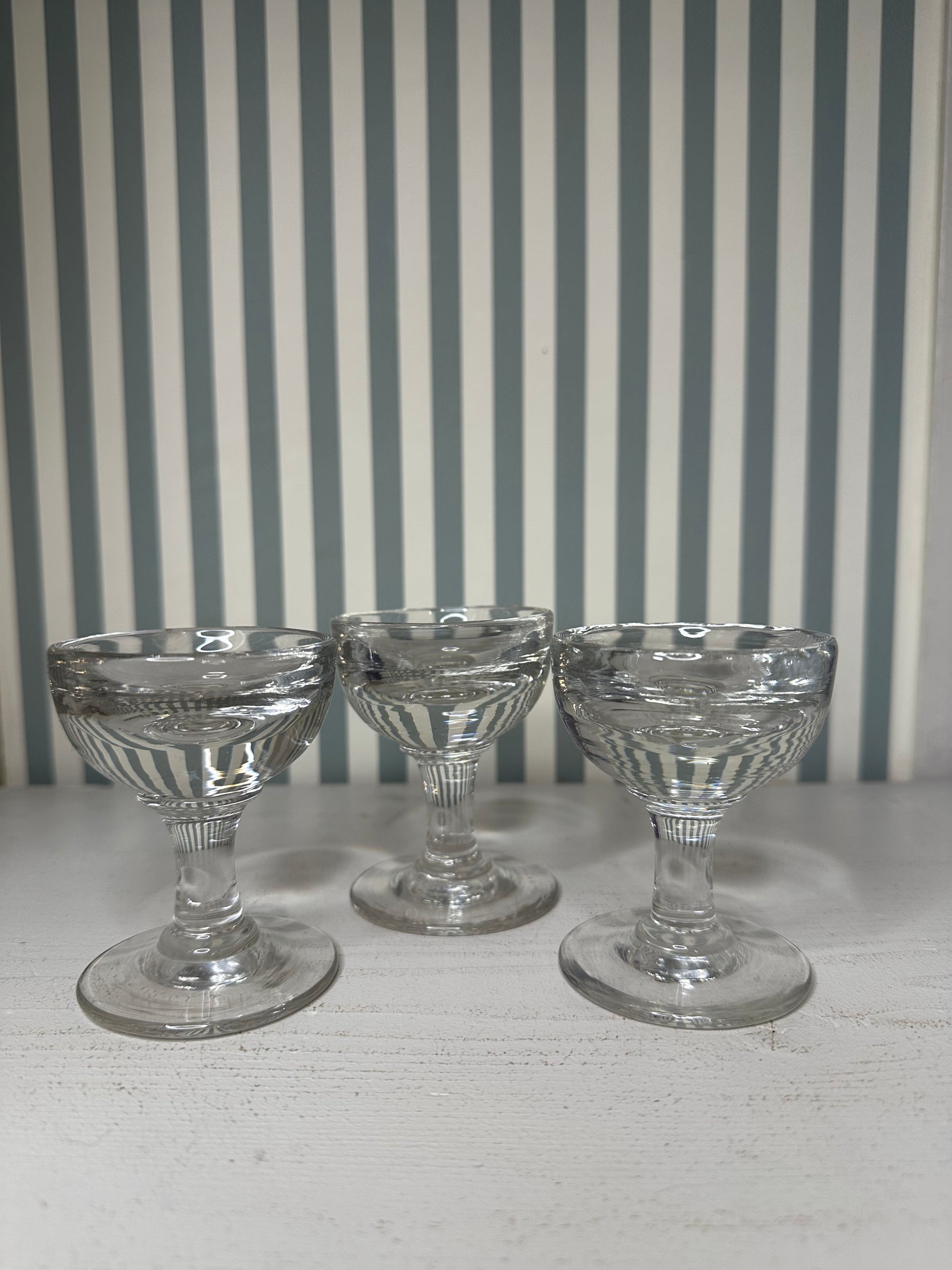 Ensemble de trois petits verres à liqueur en verre transparent, à pied, au design simple et intemporel. Idéals pour servir liqueurs, digestifs ou petits desserts.